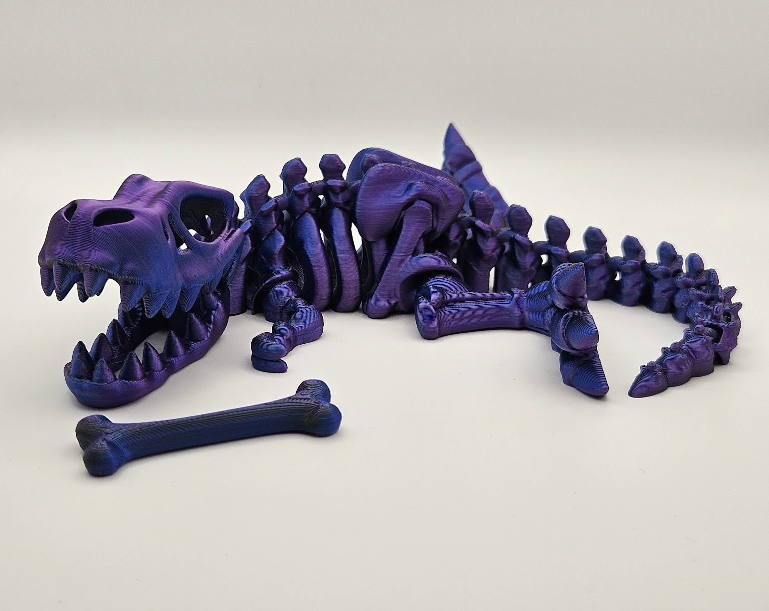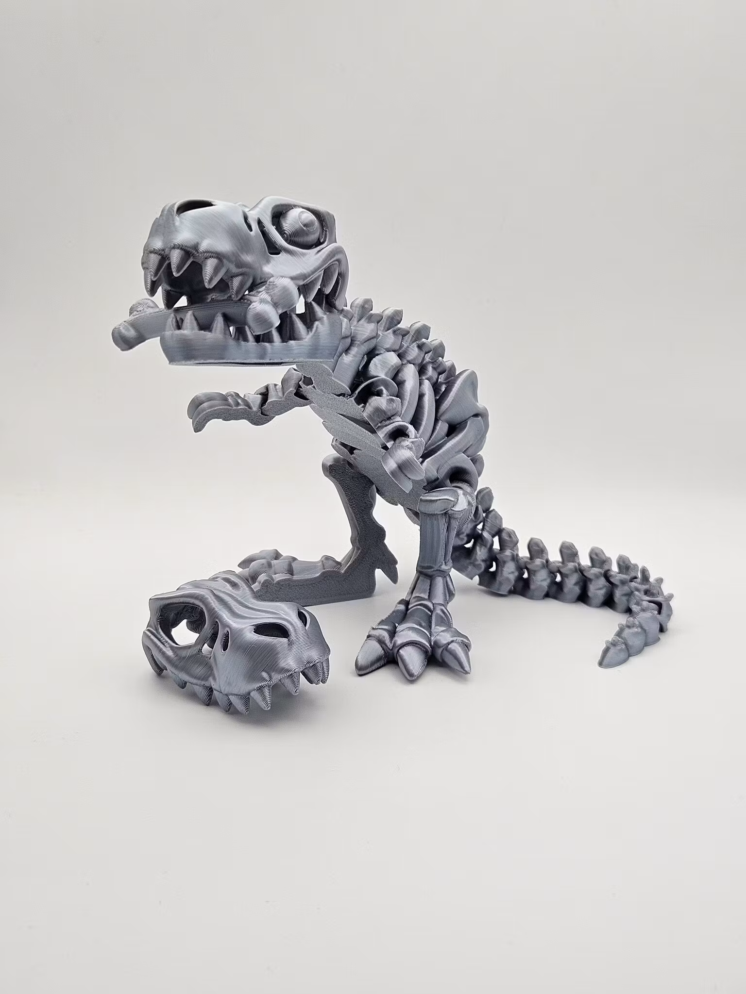Modellen kommer med rörliga käkar och en liten extra detalj – ett ben som passar perfekt att placera mellan tänderna!